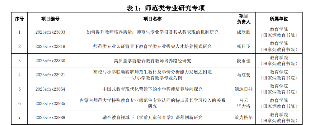 我院师范类专业研究专项获批7项、四新建设研究专项获批2项、课程思政研究专项获批2项、数字化建设研究专项获批1项、其他与学校发展现实相结合的校本研究项目获批1项。